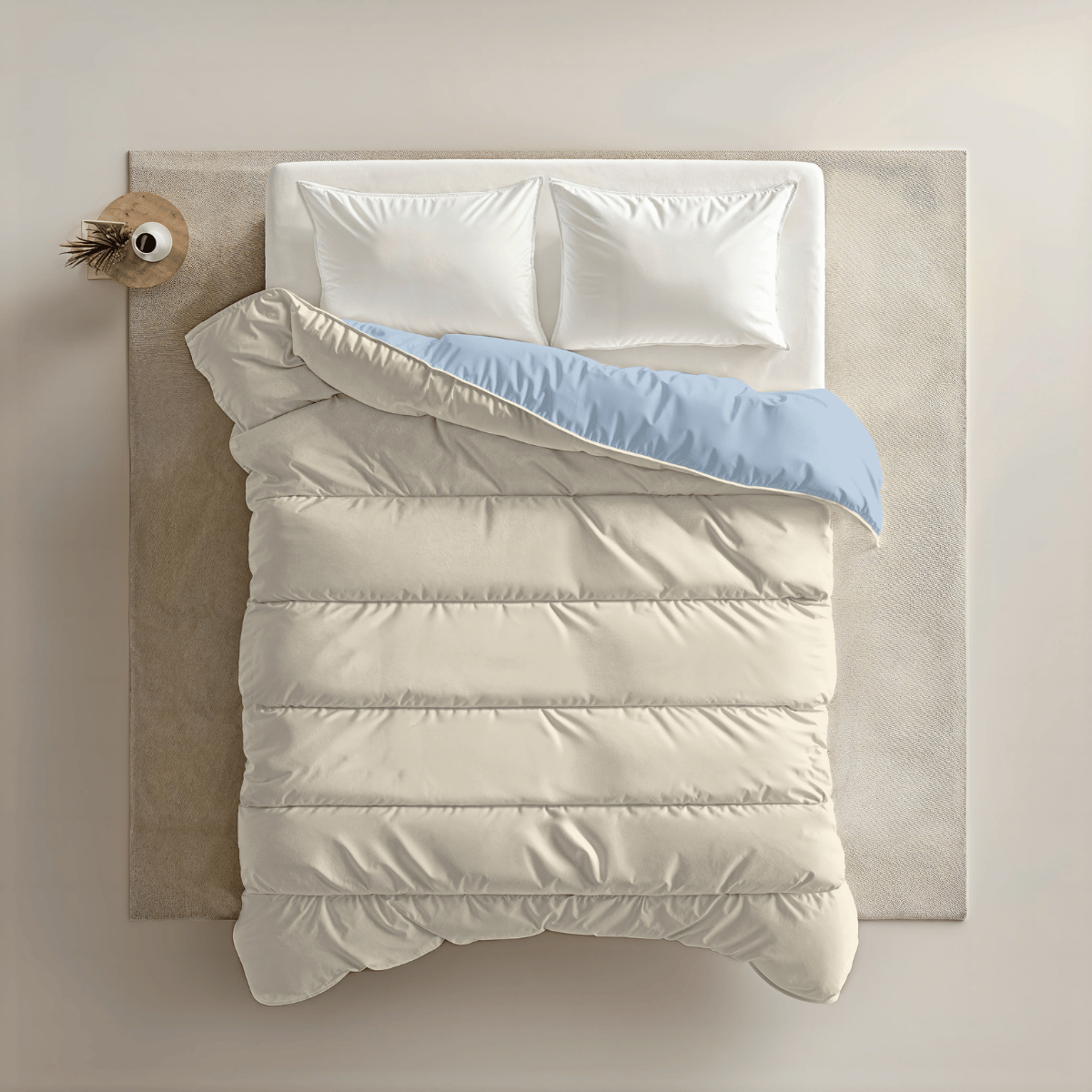 Våra 2-i-1 täcken passar för alla årstider. Du behöver bara ett täcke för hela året.