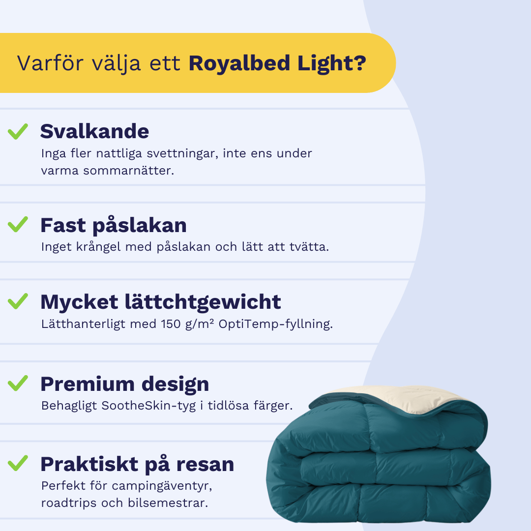 Våra 2-i-1 täcken passar för alla årstider. Du behöver bara ett täcke för hela året.